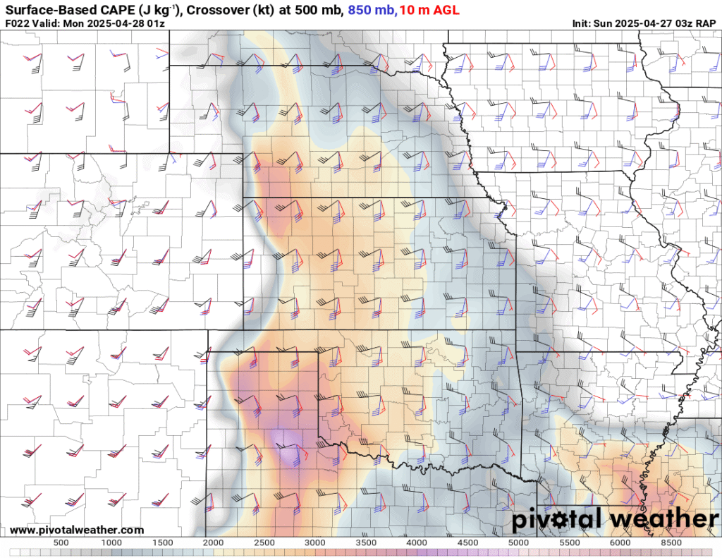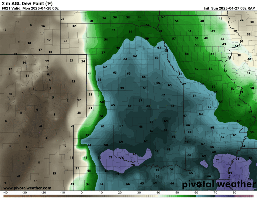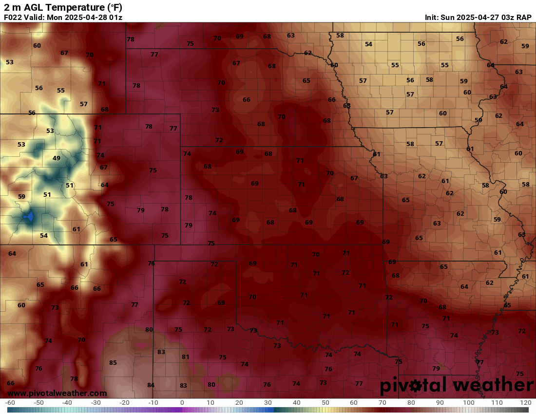 I was specifically impressed with temperatures at 700mb in the RAP runs, showing an area along the dryline in Western Kansas and Nebraska that would be sufficiently cool for convective initiation, or so I thought.