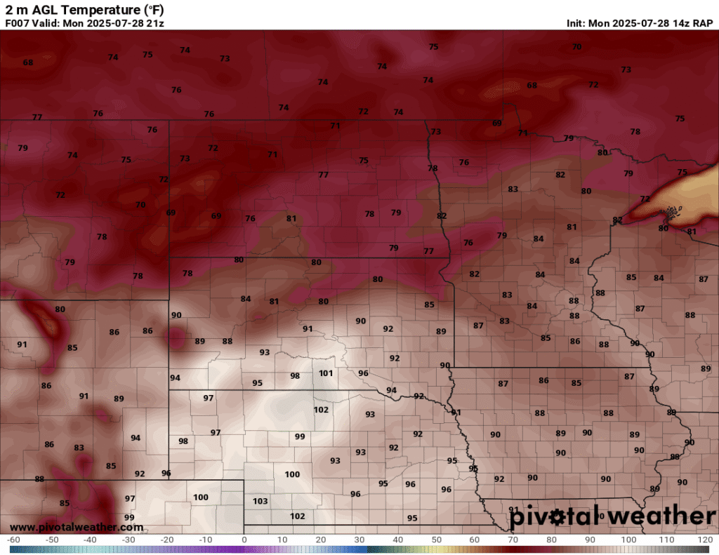 Between visiting the National Monument and work obligations, I became distracted. When I started moving west, the idea was to go to the Huron area or a little further west and/or north. Convective Initiation further southwest put me out of position big time. To compound the issue, I headed west out of Pipestone and continued through Madison and then tried to go through Salem. Road construction including a 15 minute wait for a pilot car and another long detour around Salem and back to I-90 cost me a lot of time.