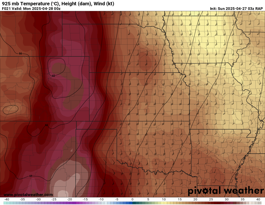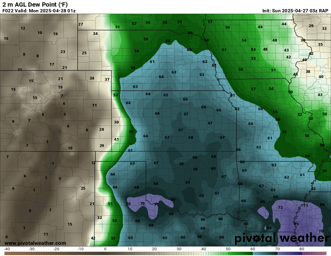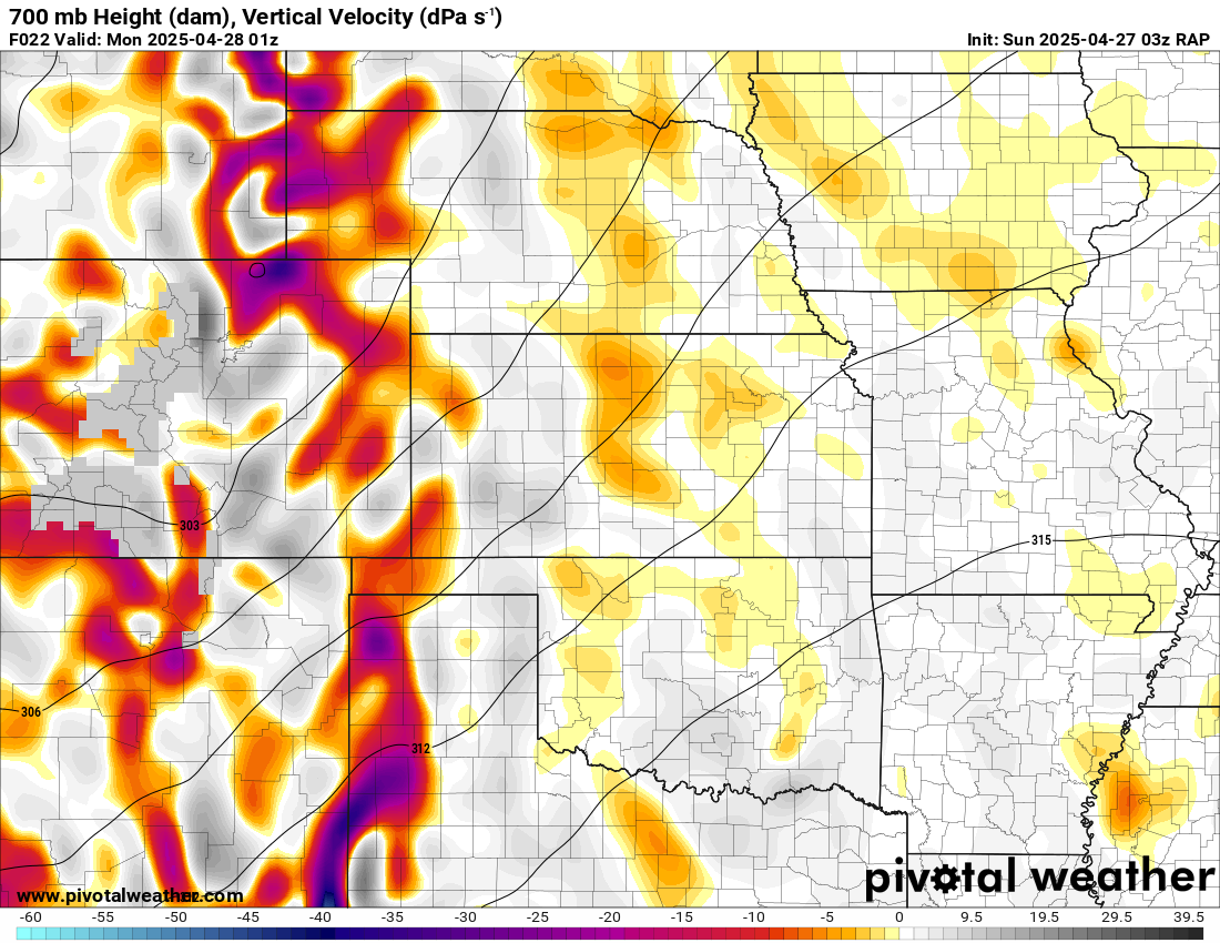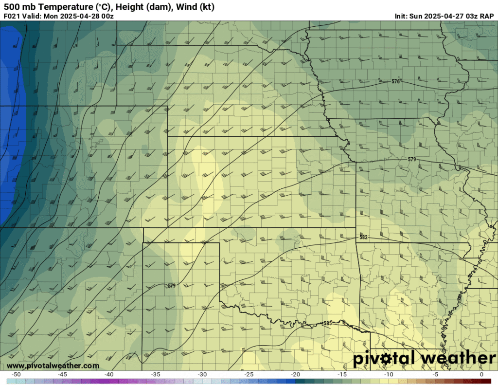 I was specifically impressed with temperatures at 700mb in the RAP runs, showing an area along the dryline in Western Kansas and Nebraska that would be sufficiently cool for convective initiation, or so I thought.